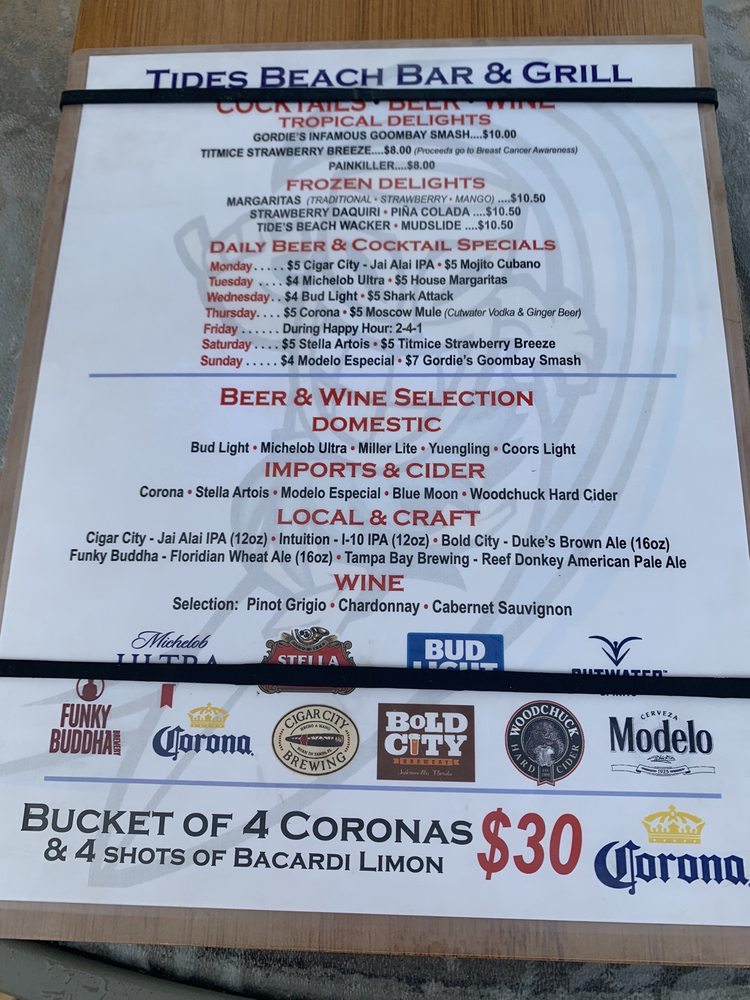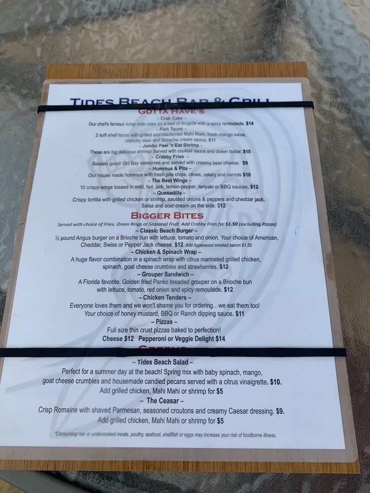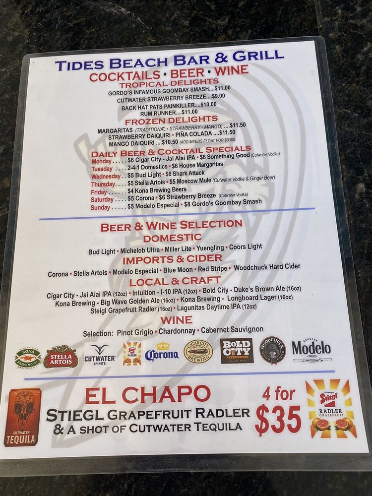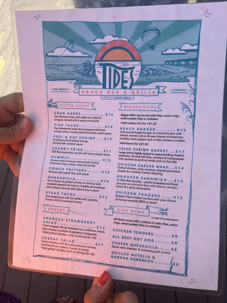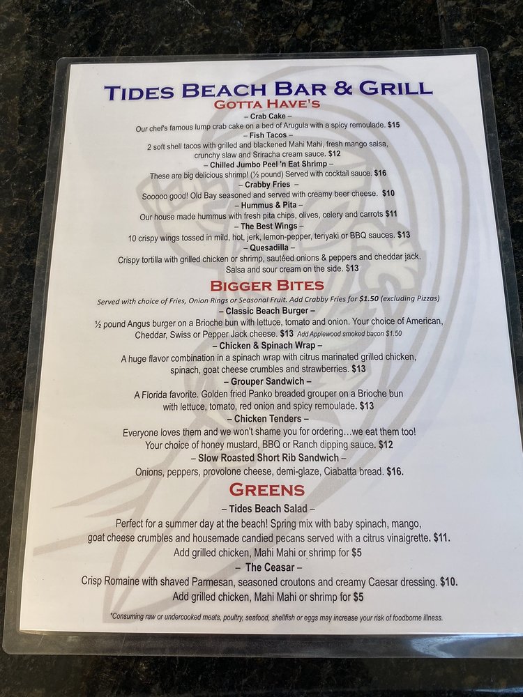 Tides Beach Bar & Grille Menu